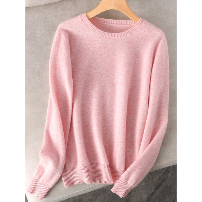 純羊毛套頭針織衫女2024秋冬短款圓領上衣基礎薄款內搭打底衫毛衣