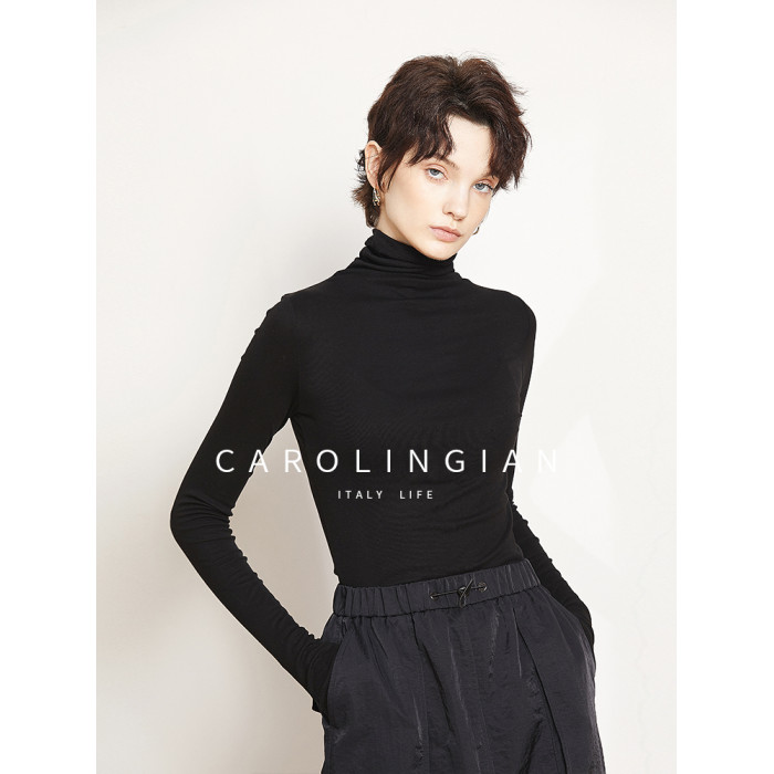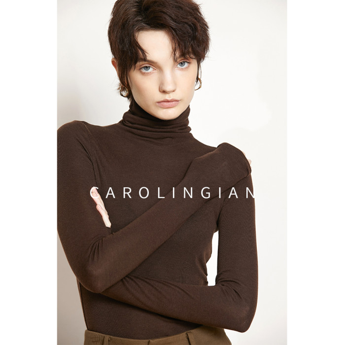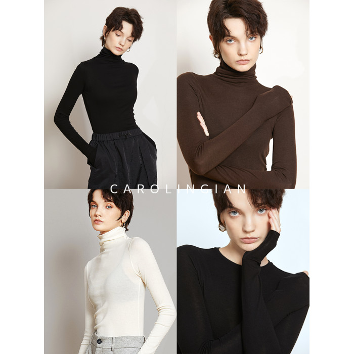 Carolingian奧地利蘭精天絲羊毛!柔糯高領修身打底衫上衣女