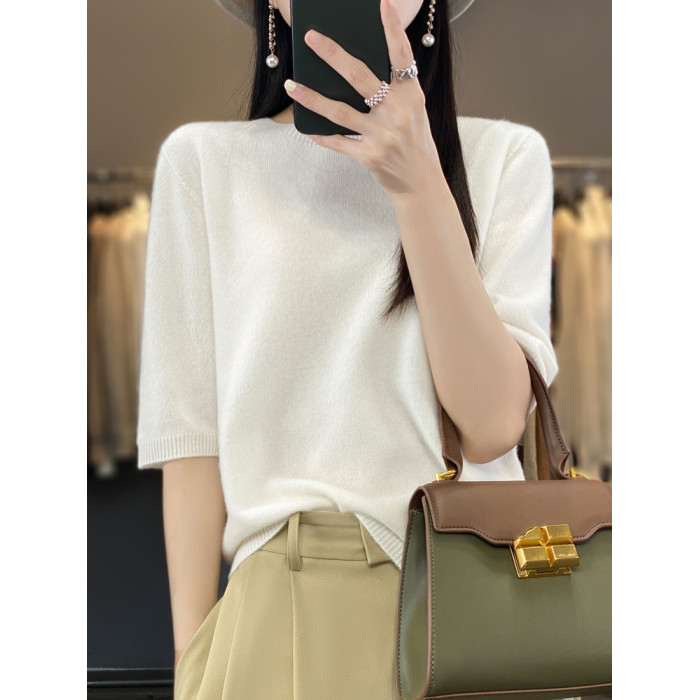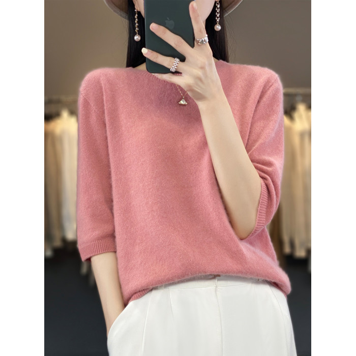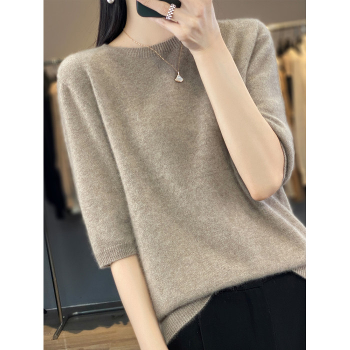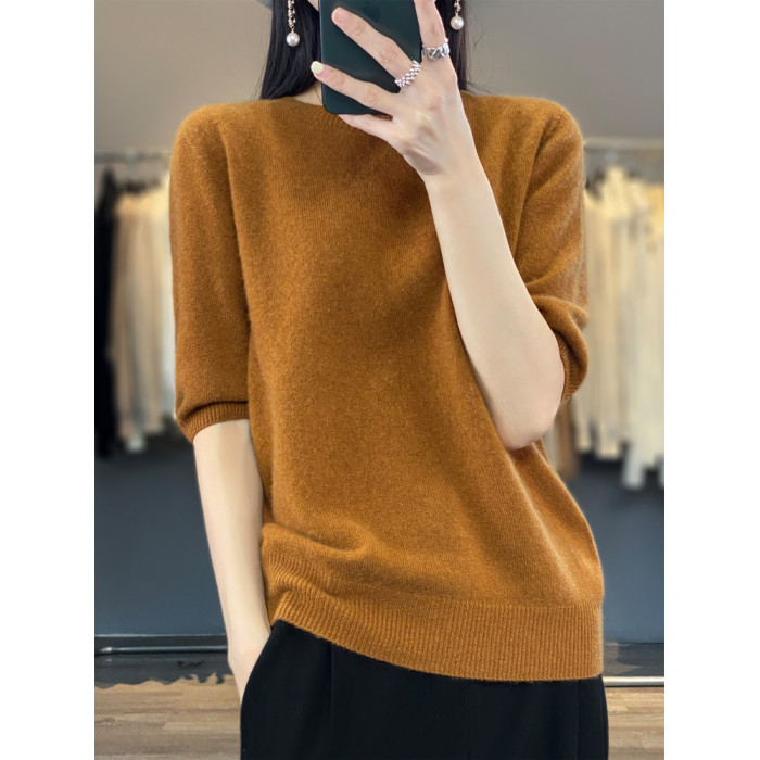 100純羊毛五分袖打底衫女2025新款秋冬內搭洋氣大碼女裝針織毛衣