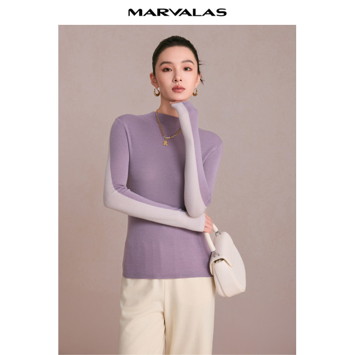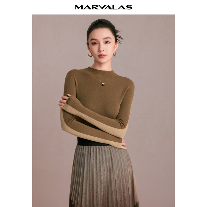曼德詩半高圓領針織衫女2025冬季新款雙面穿羊毛衫柔軟打底衫上衣