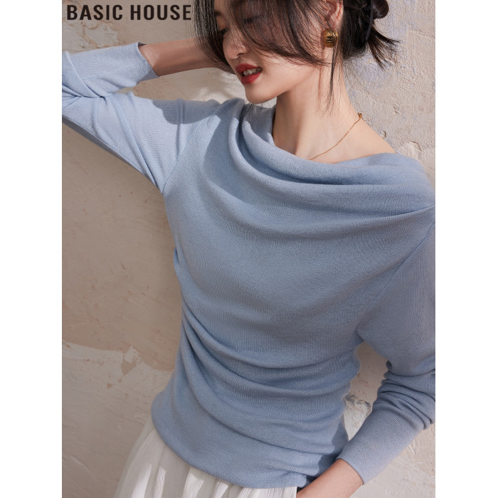 Basic House/百家好一字肩蕩領內搭針織毛衣打底衫女2025春季新款