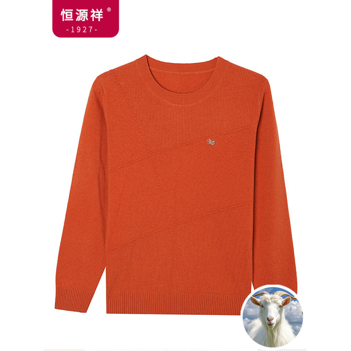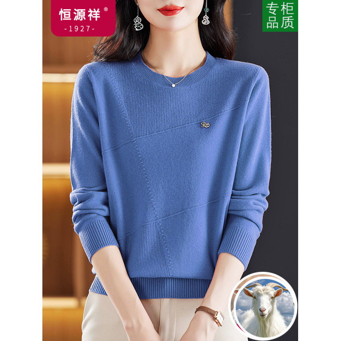恒源祥純羊毛衫女秋冬季新款圓領媽媽洋氣上衣寬松針織內搭打底衫