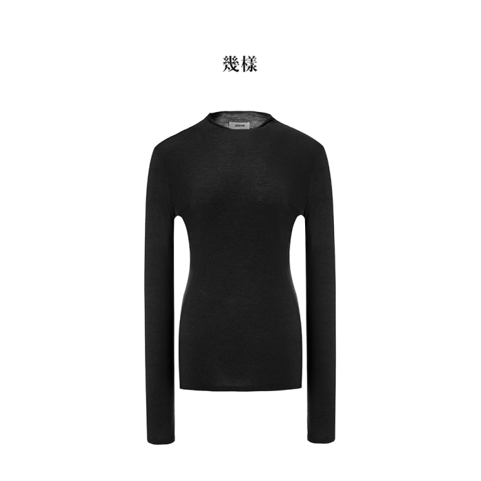 幾樣GEIJOENG日本彈力針織卷邊半高領修身針織打底衫J24AT3337
