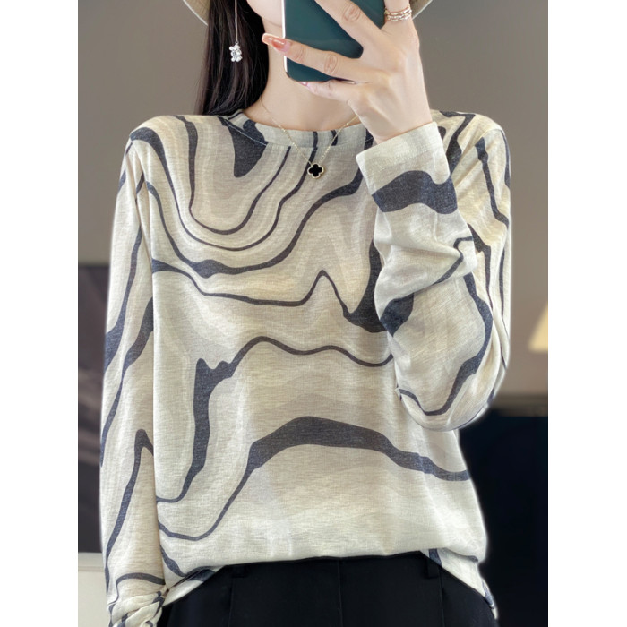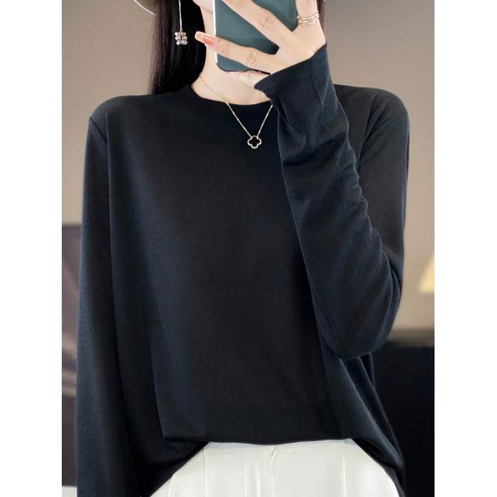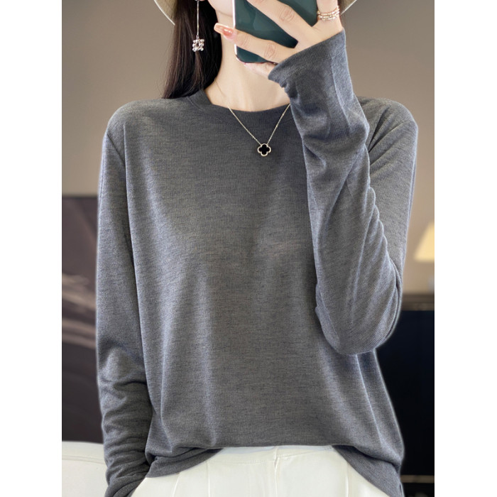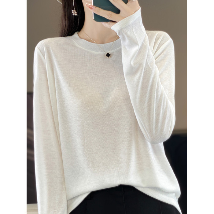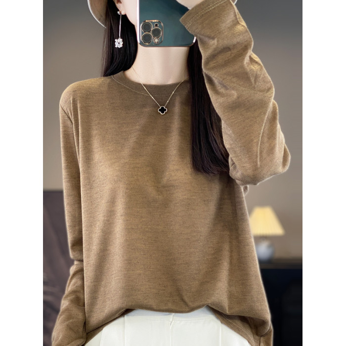 2025春秋新款純色百搭休閒寬松針織長袖打底衫女大碼女裝薄款上衣