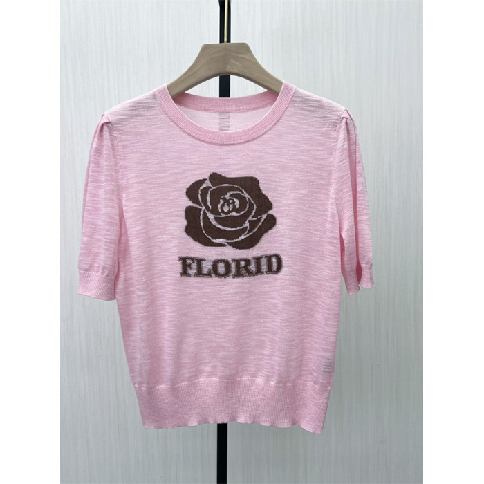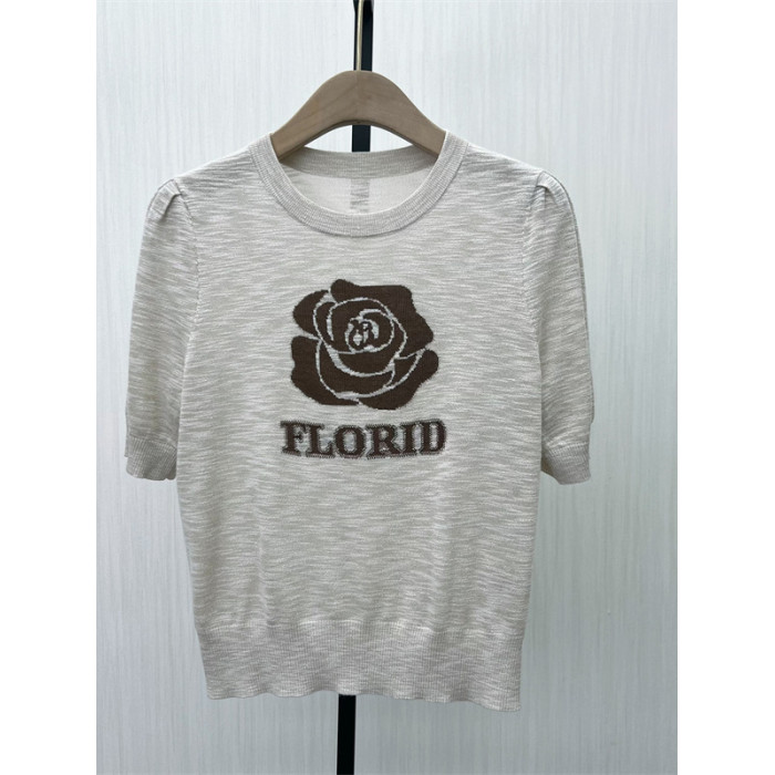 良月●2025春季新品 短袖針織衫女寬松薄款提花打底衫上衣1135