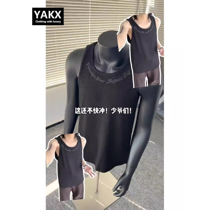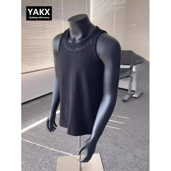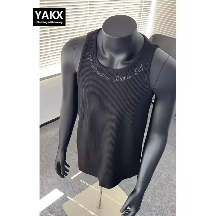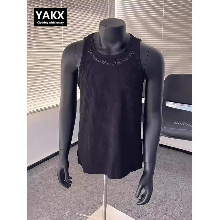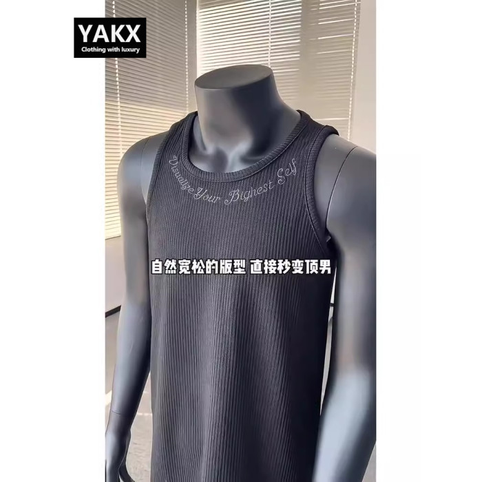 高級黑色重磅刺綉背心男士夏季2025新款痞帥運動健身坎肩汗衫男款