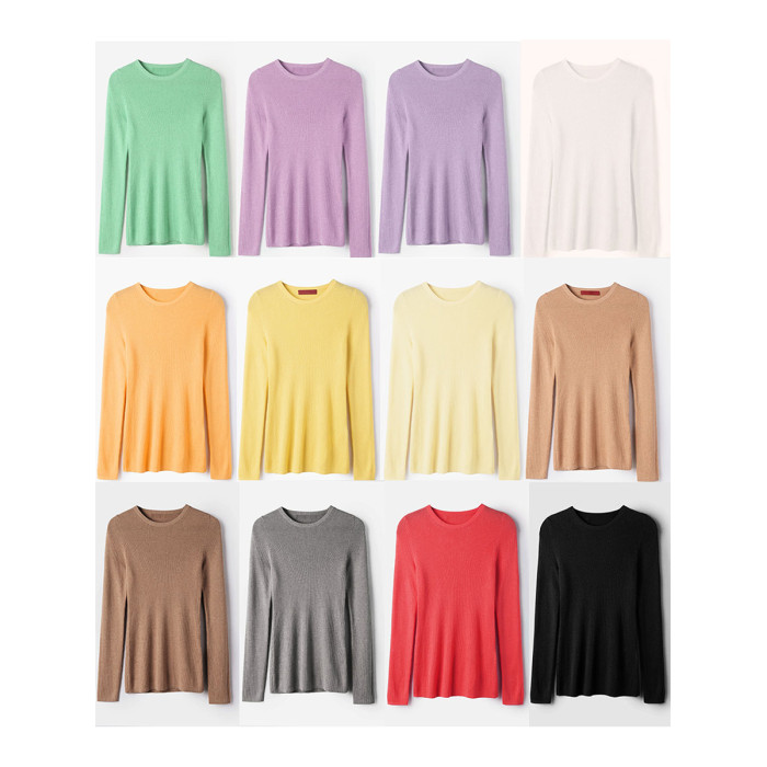 爆美!客供!精細高級羊絨衫基礎款針織打底衫女圓領修身純色顯瘦
