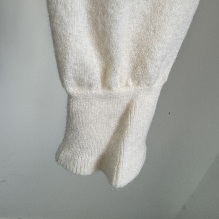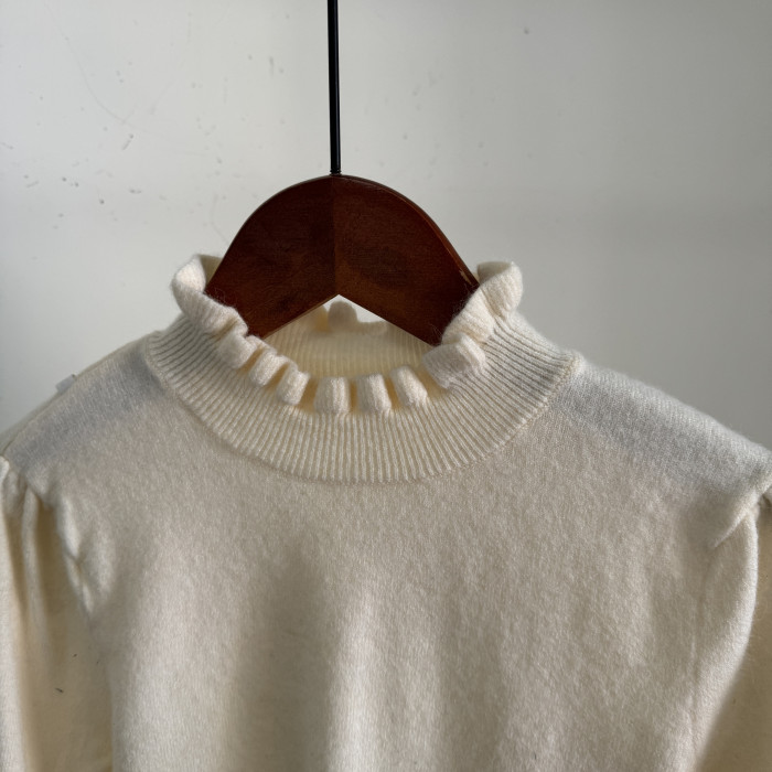 菀系列剪標微瑕白色花邊半高領打底衫復古燈籠袖針織毛衣女W147