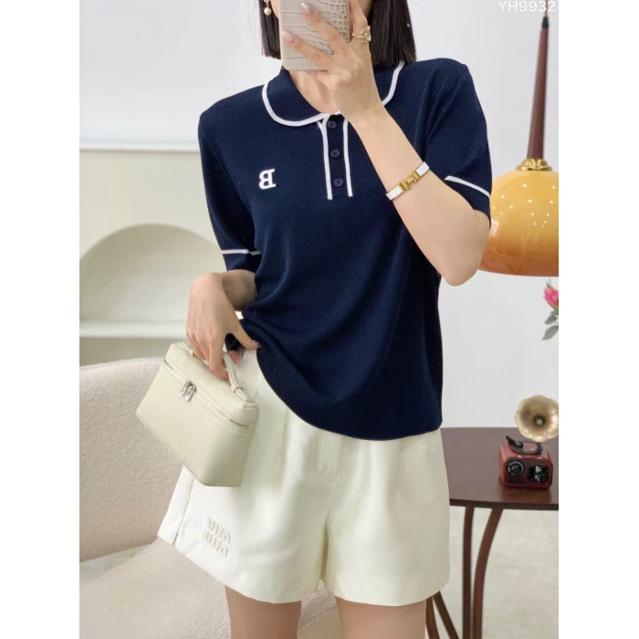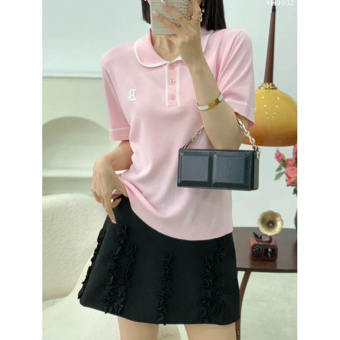 O歐洲站2025春夏新款翻領針織衫女修身顯瘦洋氣百搭打底衫上衣