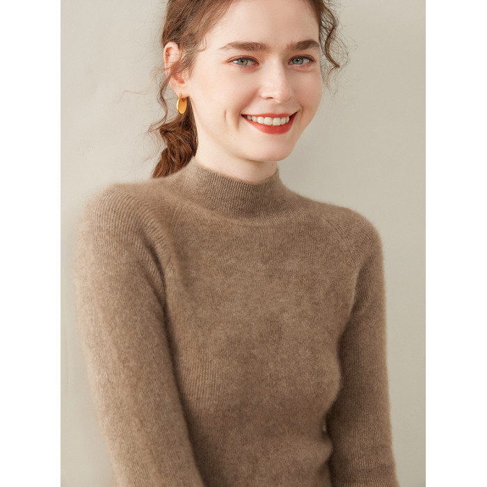 2024秋冬半高領100%純山羊絨女修身顯瘦套頭毛衣抽條緊身打底衫