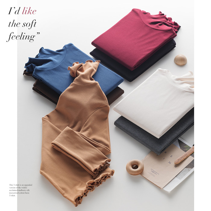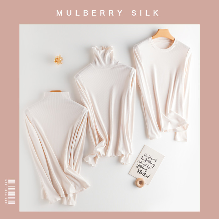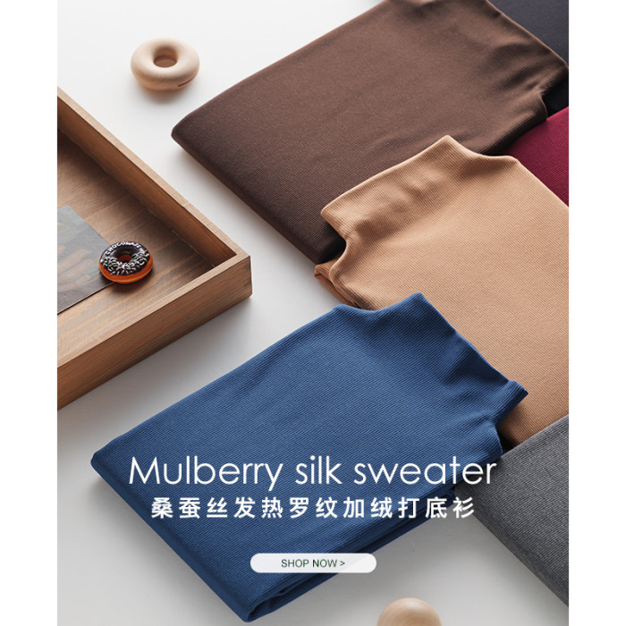 超好穿 桑蠶絲自髮熱加絨打底衫秋冬新款 修身純色百搭顯瘦