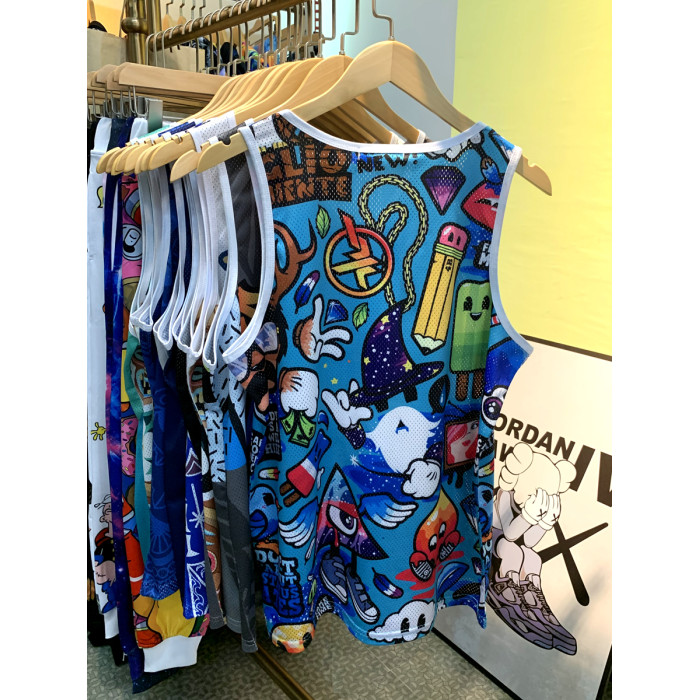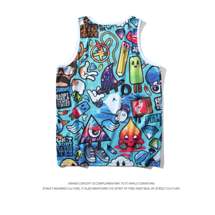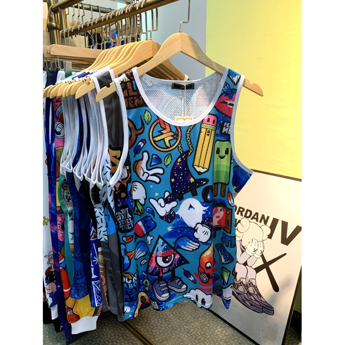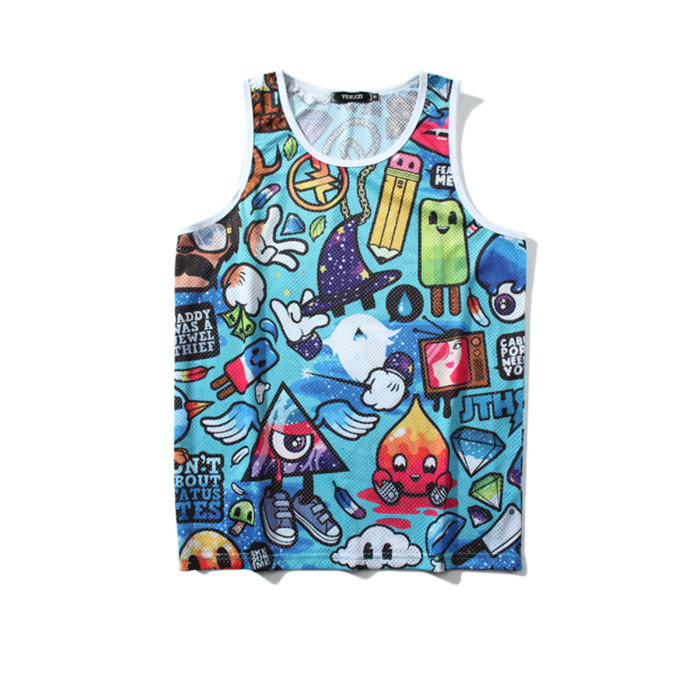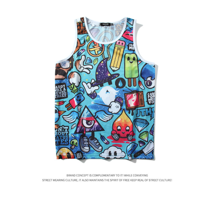 夏季薄款冰絲汗背心男士女休閒圓領運動健身坎肩印花無袖套頭青年