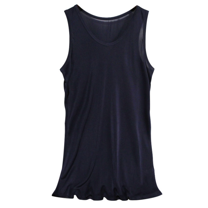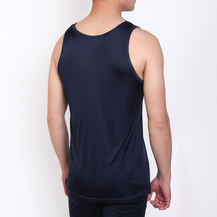 D12桑蠶絲背心男夏薄款大碼寬松針織真絲彈力背心夏季運動無袖T恤