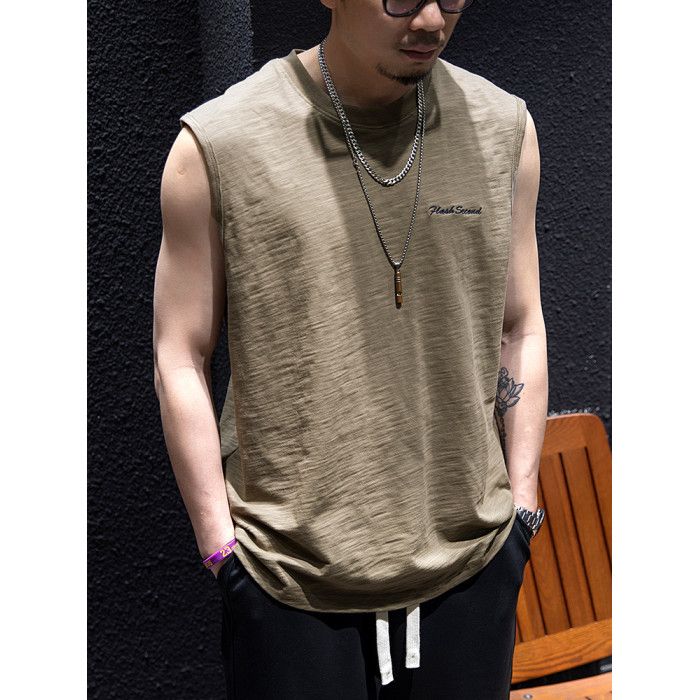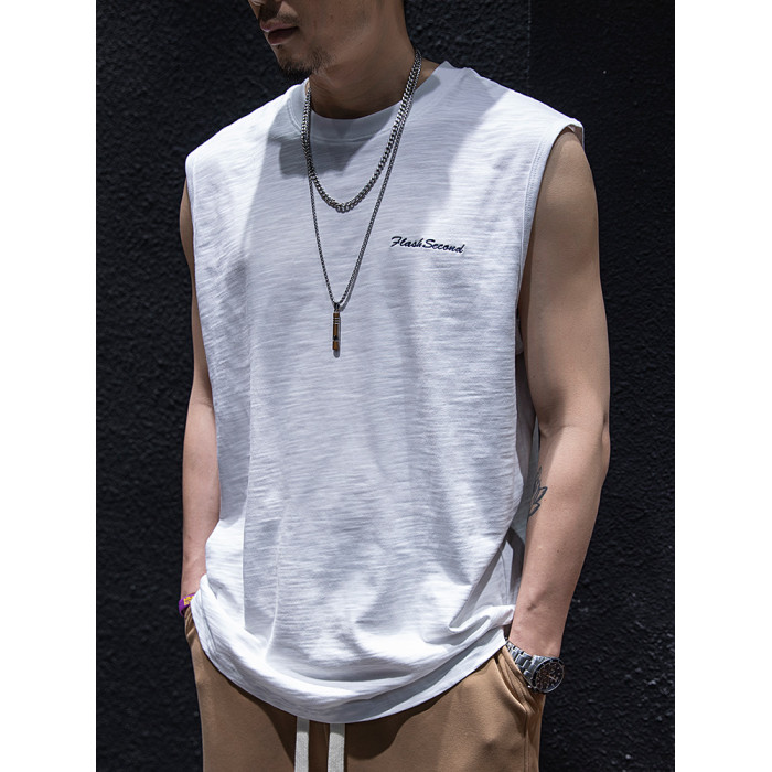 竹節棉無袖t恤背心男夏季寬松潮牌大碼坎肩半袖男生潮流百搭短袖