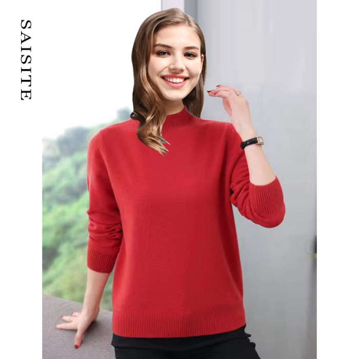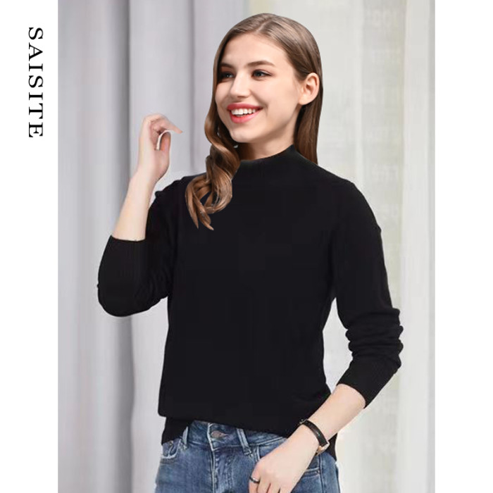 賽斯特女裝秋冬長袖半高圓領綿羊毛百搭休閒針織打底衫Z078