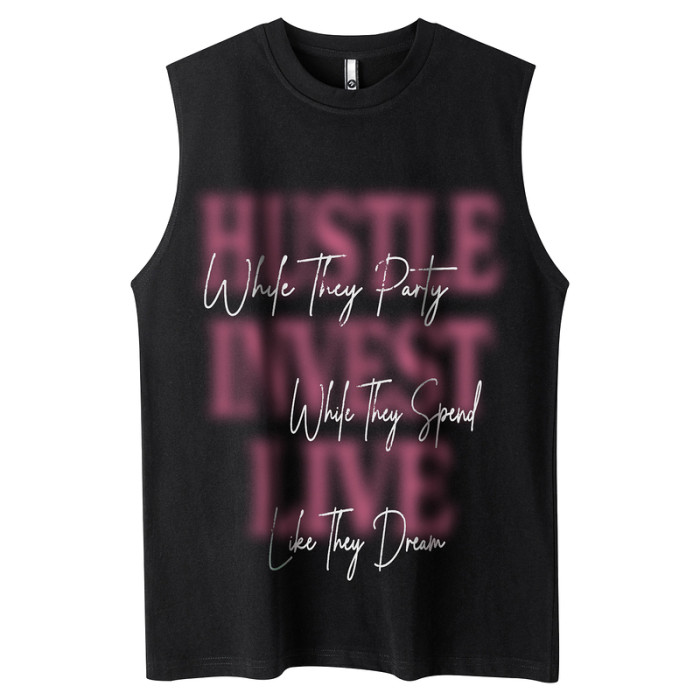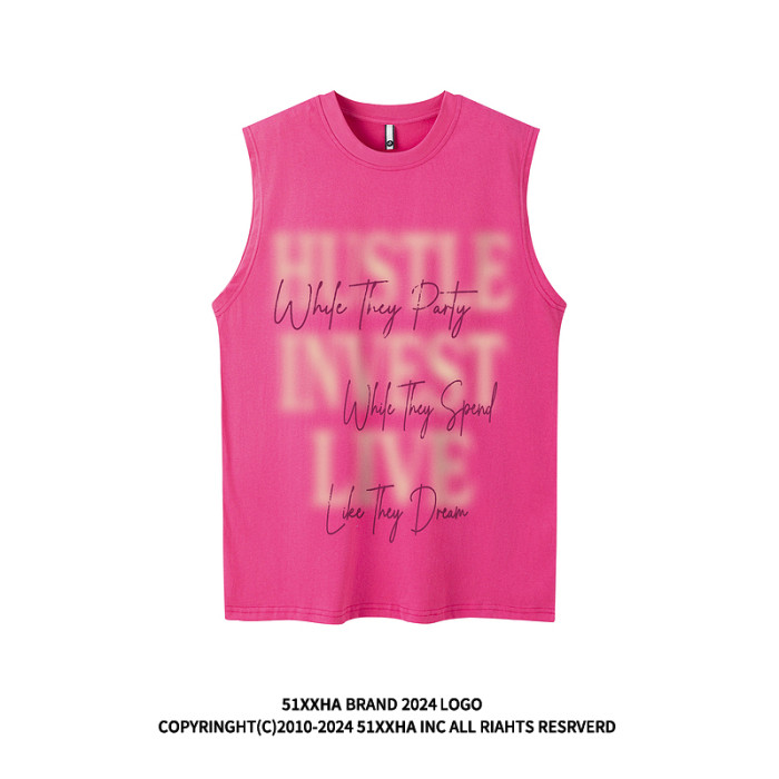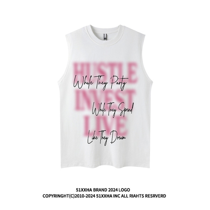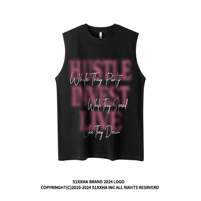 51嘻哈ins歐美潮牌寬松純棉坎肩背心健身運動復古字母無袖T恤男生
