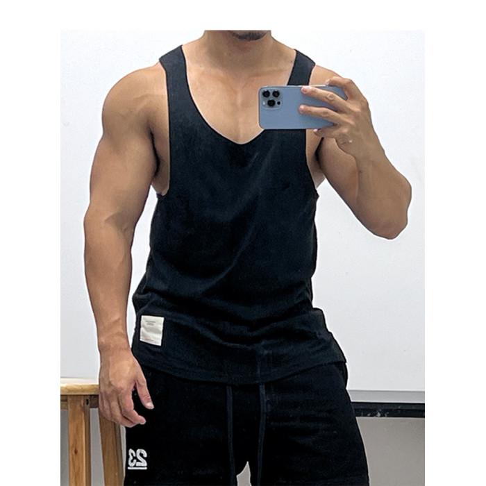性感但不誇張!低胸寬松純棉背心無袖T恤顯身材體育生運動健身修身