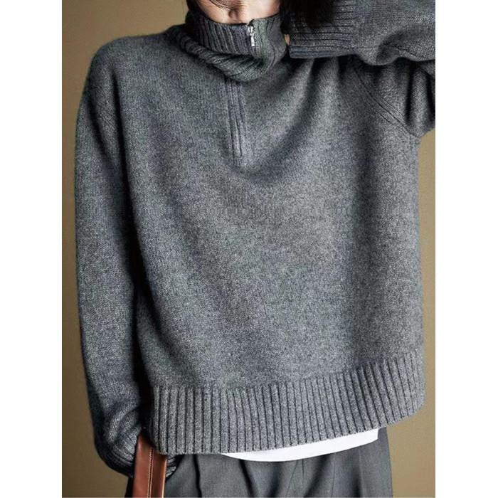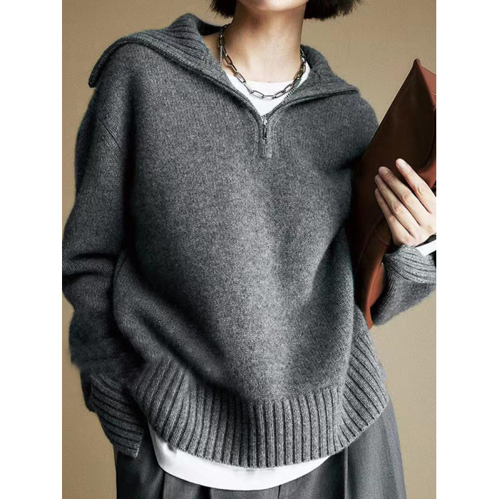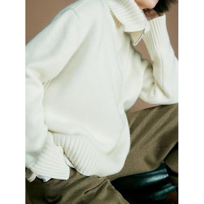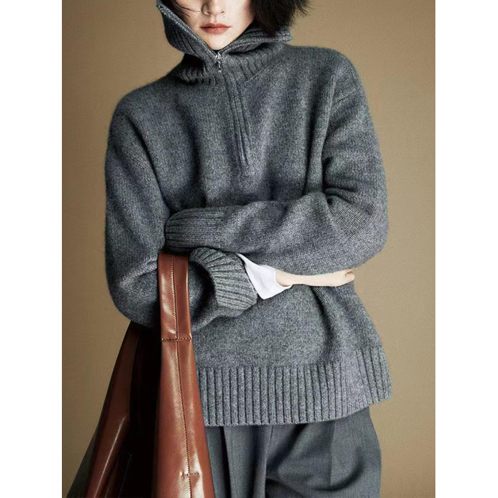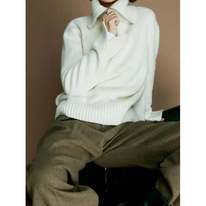 半拉鍊翻高領套頭羊絨毛衣女秋冬新款保暖加厚純色羊毛針織打底衫
