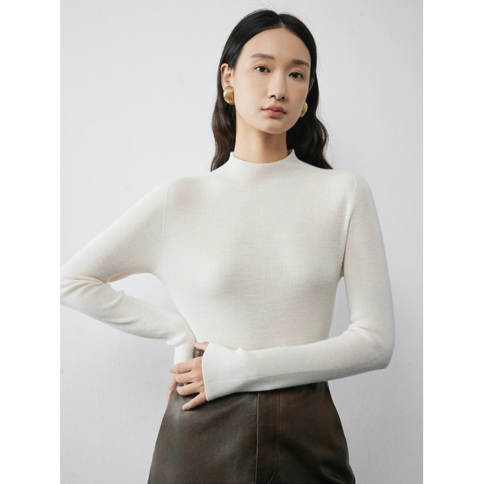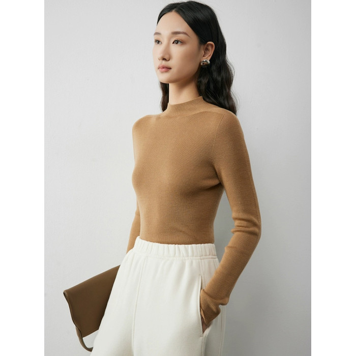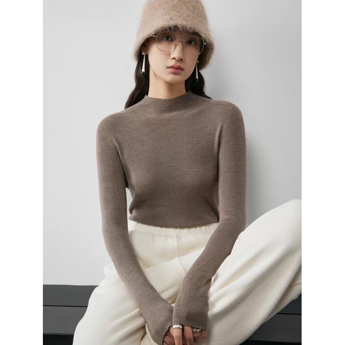 100%可機洗精紡羊毛半高領修身無縫針織內搭打底衫女秋冬百搭毛衣