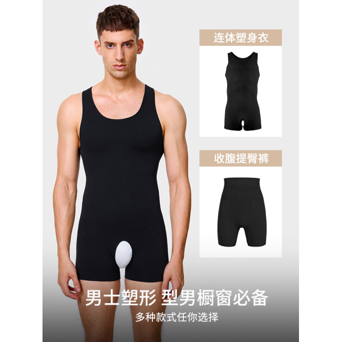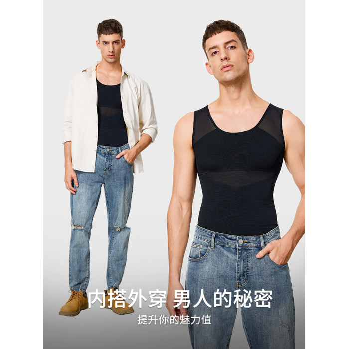 TOAO網紗連體塑身衣男透氣西裝職場開檔收腹無痕緊身內衣打底背心