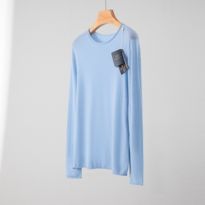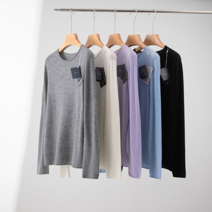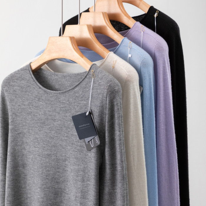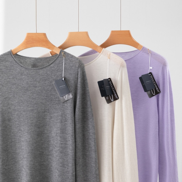 一線成衣敭子紗精紡100羊毛圓領針織打底衫女寬松休閒簡約薄毛衣