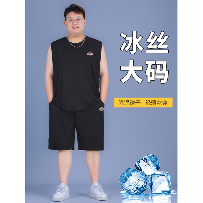 大碼背心男加肥加大無袖男t恤坎肩籃球服運動套裝速乾冰絲運動服