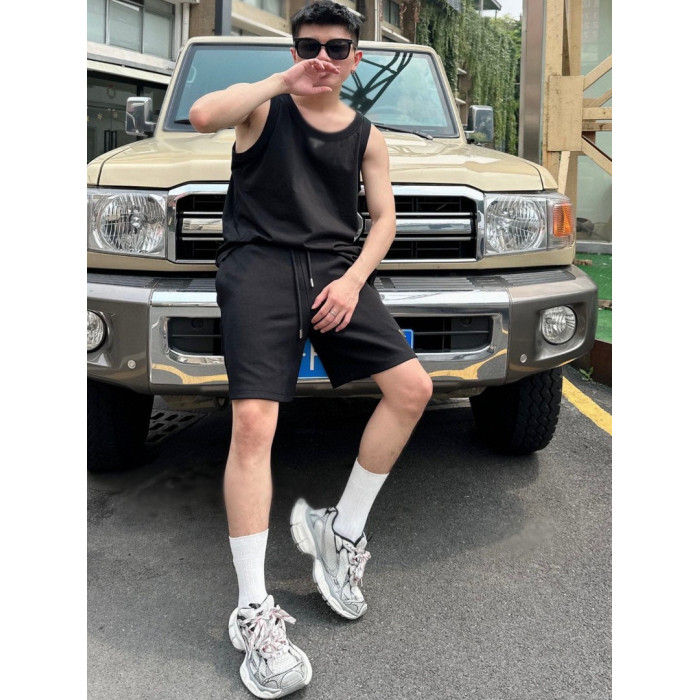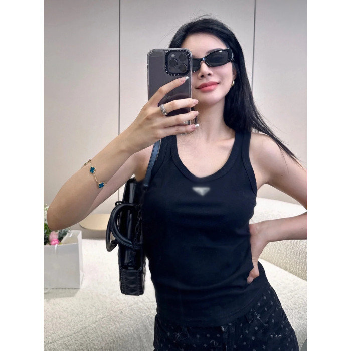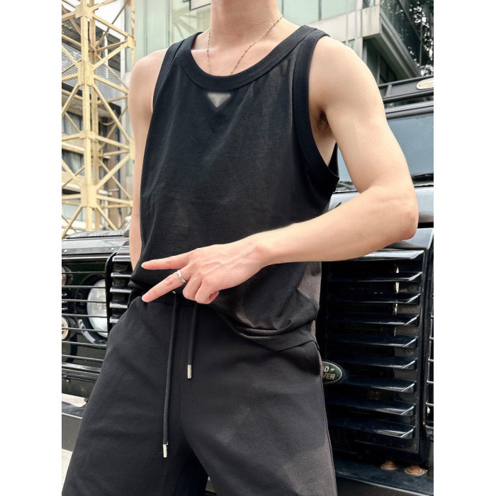 吊打市面版本歐美夏季新款P家三角標金屬徽章運動休閒無袖t恤背心