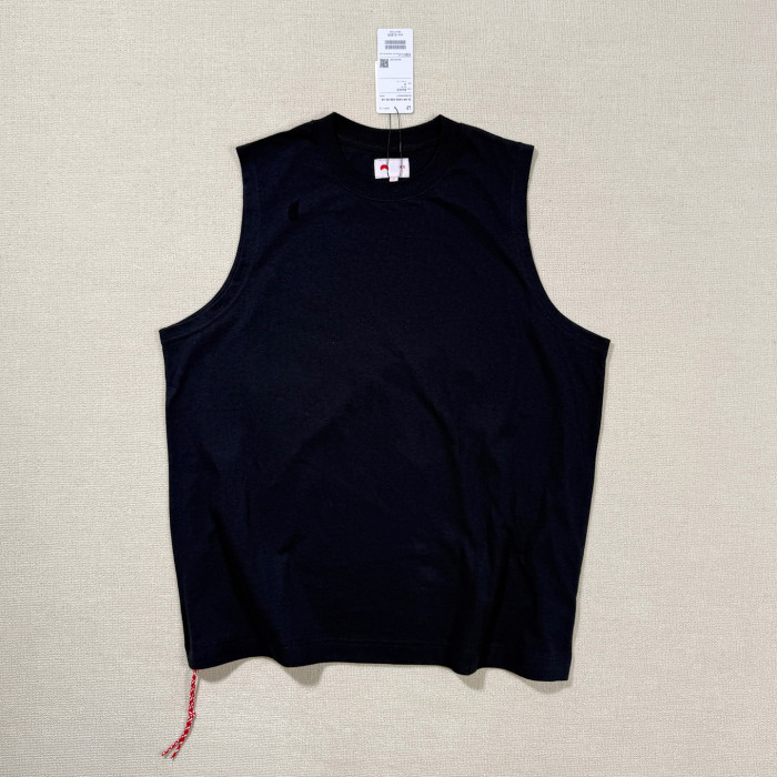 BMS復古寬松做舊磨毛起球京都紅繩編織簡約棉質背心坎肩無袖T恤