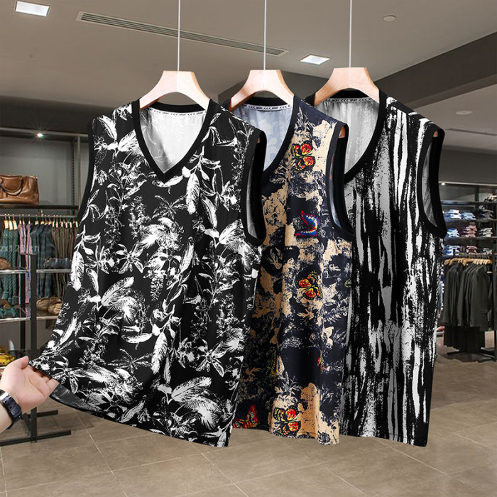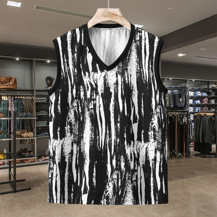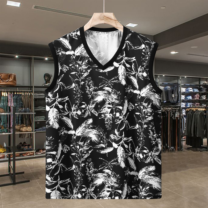 大碼背心男夏季薄款潮流胖子帥氣V領坎肩肥佬寬松無袖t恤加肥加大