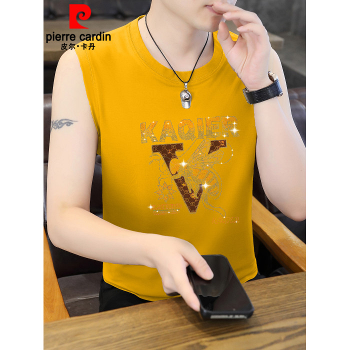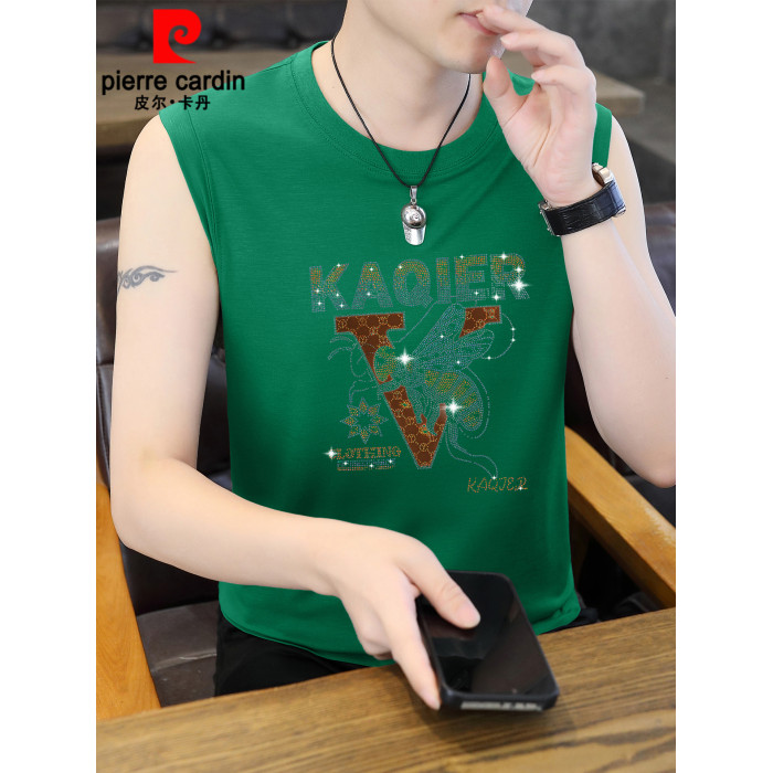 皮爾卡丹歐貨潮牌燙鑽男士背心寬松休閒夏裝坎肩痞帥無袖T恤男裝