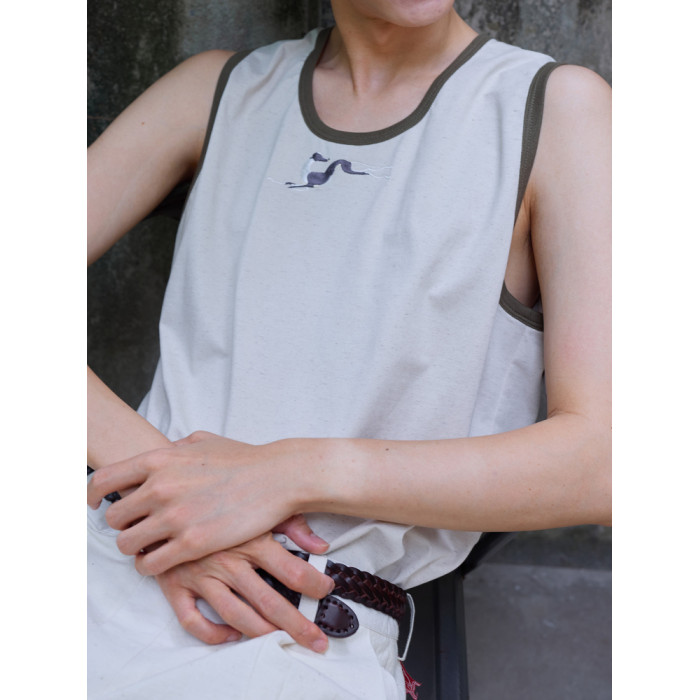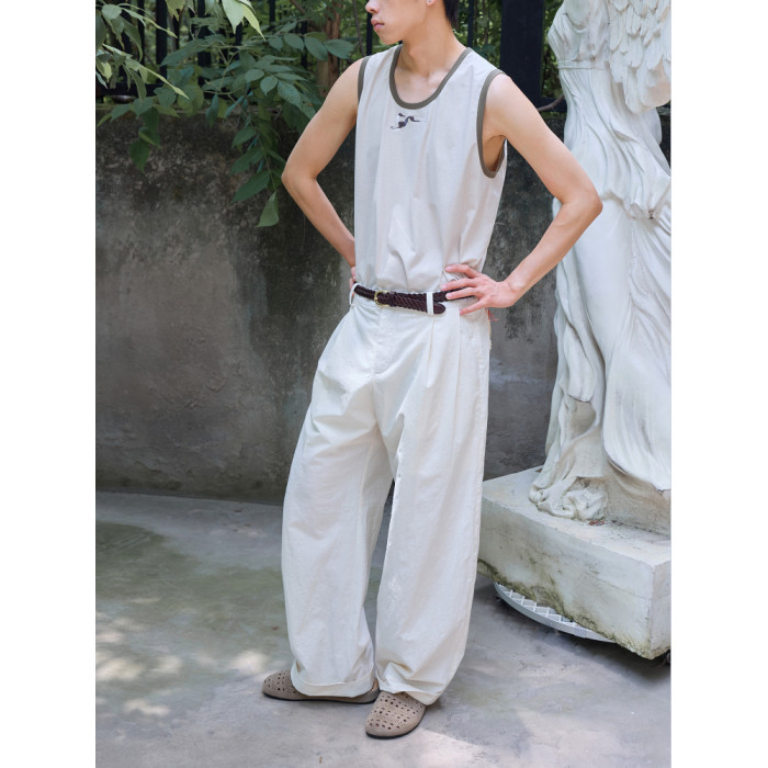 原創設計小狗復古刺綉背心男夏外穿低領打底直筒合體寬松撞色窄肩