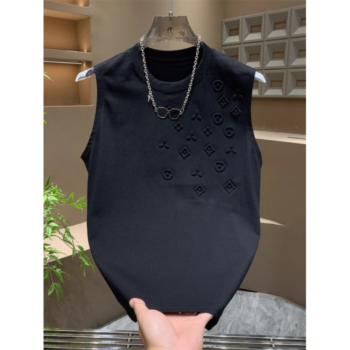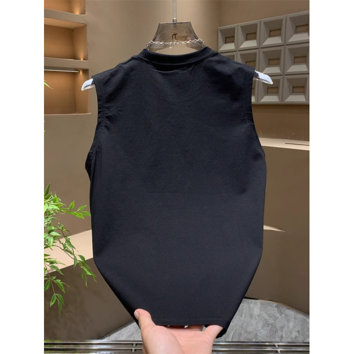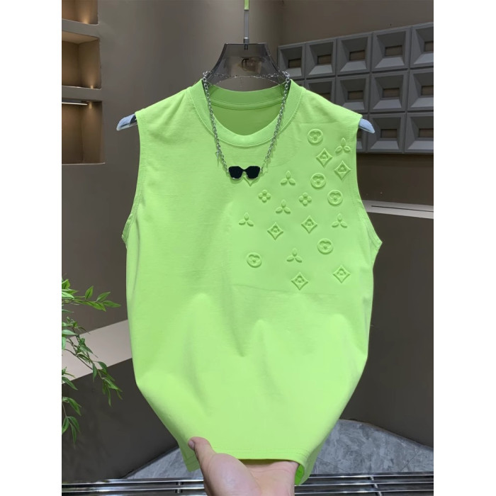 多巴胺純色背心男士無袖t恤2025新款夏季高級感坎肩運動上衣男款