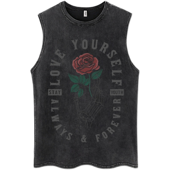 無袖坎肩男生背心重工洗水潮牌運動暗黑炸街汗衫夏季港風健身籃球