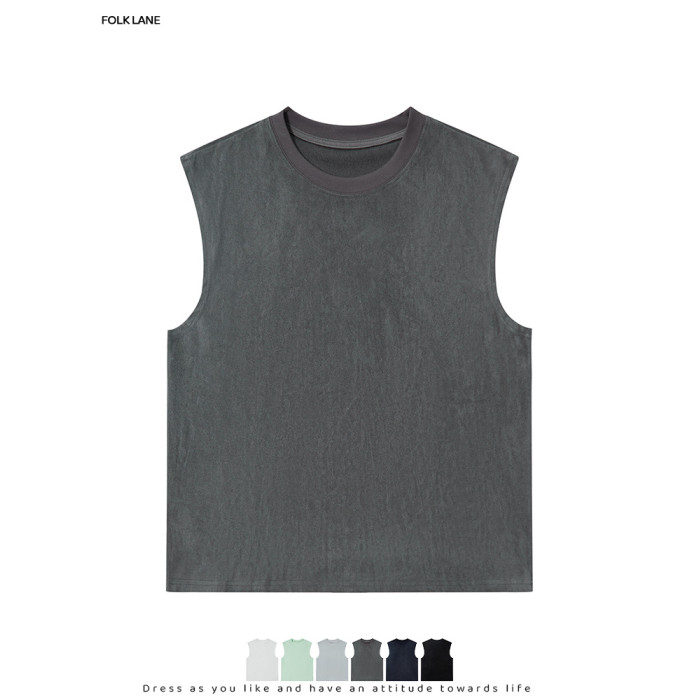 稚成人日系復古坎肩背心男女夏季新款無袖短袖寬松百搭T恤情侶潮