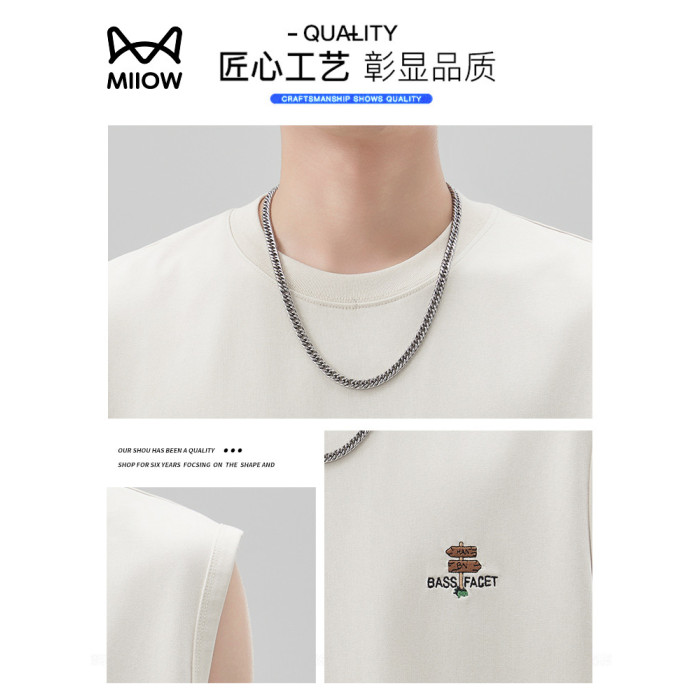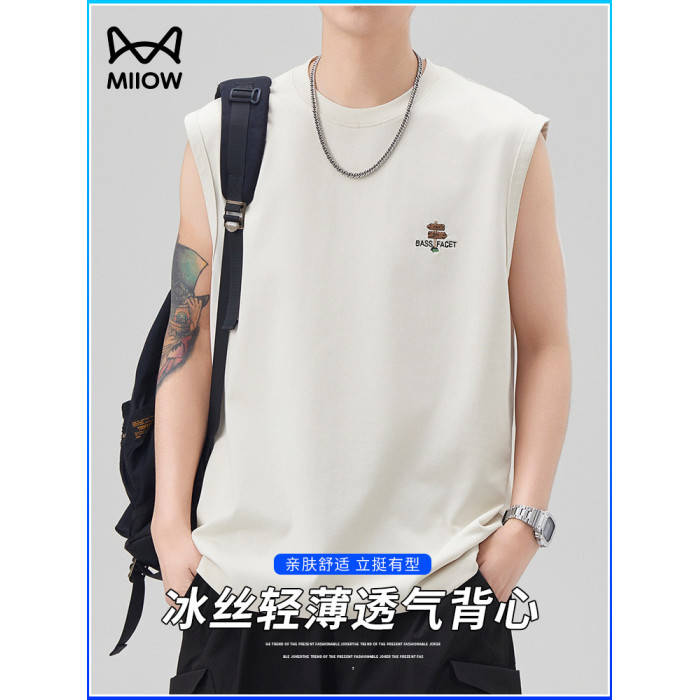 貓人美式潮牌坎肩背心男2025夏季寬松無袖打底衫運動健身短袖T恤