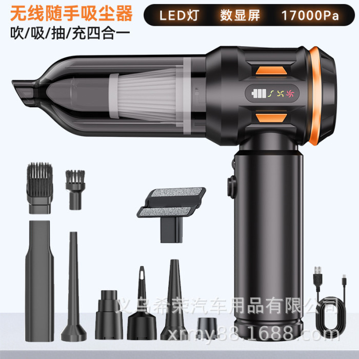 SN113無刷吹吸一體吸塵器帶電量顯示黑橙色