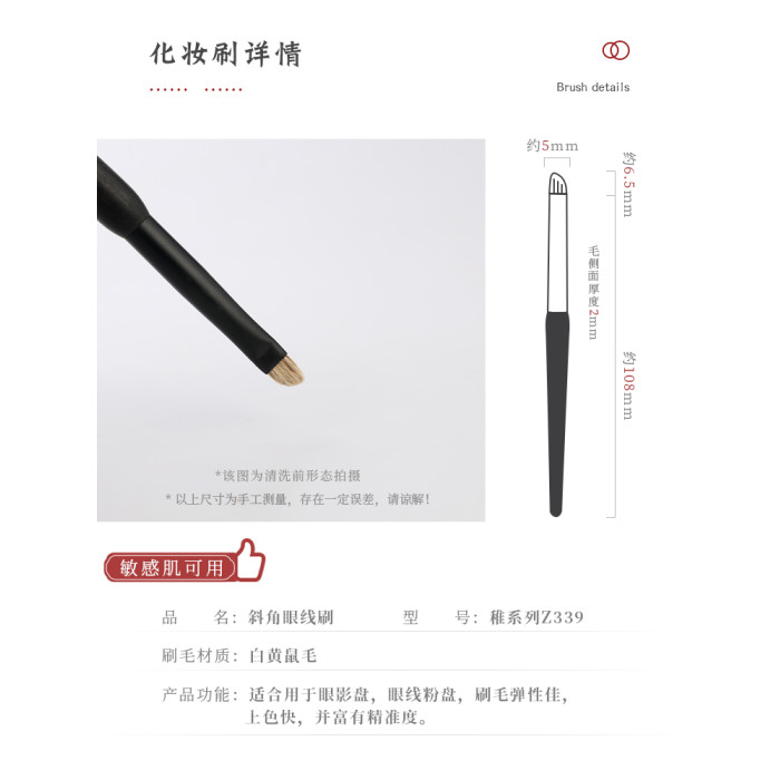 琴製化妝刷稚系列Z339可攜式眼線刷單支白黃鼠毛眼勾勒眼部化妝刷