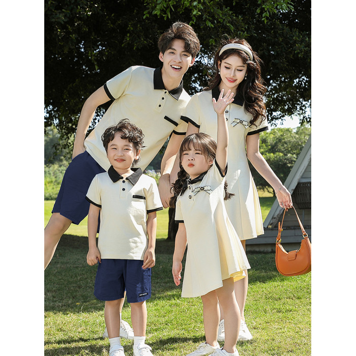 親子裝2025新款夏季一家三口四口短袖母子polo衫母女連衣裙全家裝