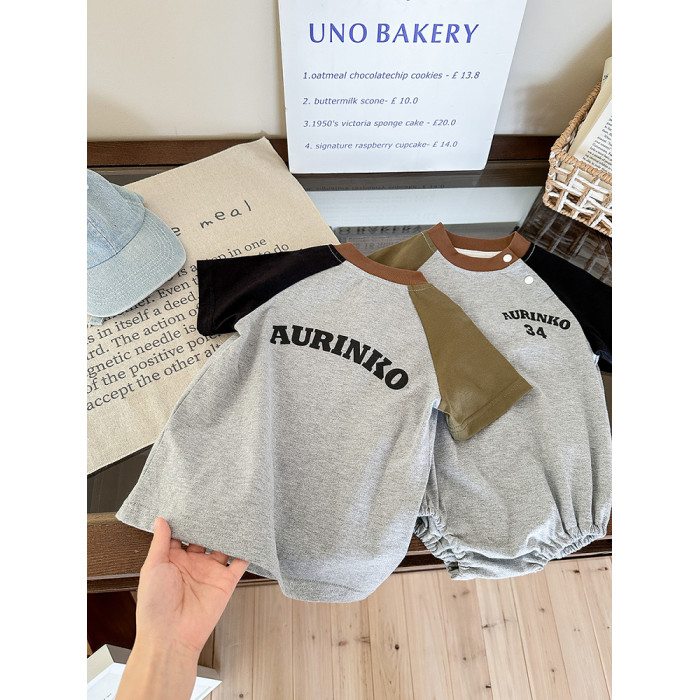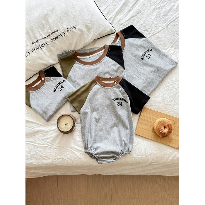 親子裝一家三口插肩袖美式夏裝拼色男童短袖柔軟百搭母女母子T恤