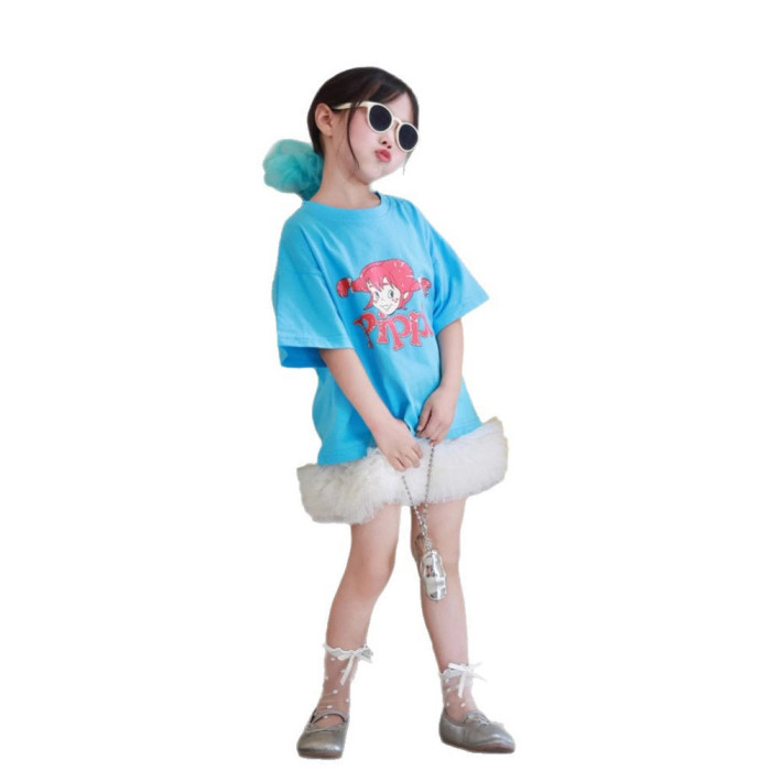 炸街親子裝夏季新款母女裝兒童卡通T恤多層裙擺紗裙半裙百搭紗裙