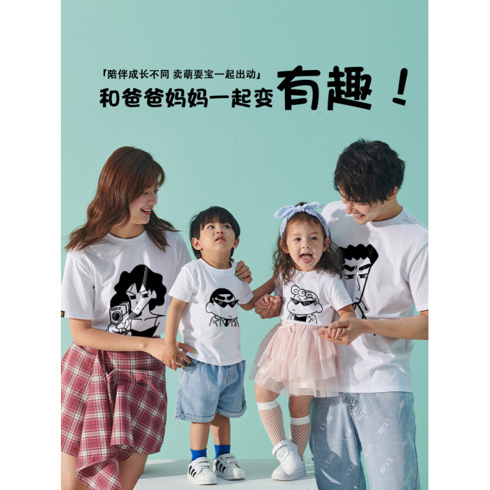 高級親子裝一家三口四口t恤2025新款夏裝母女裝純棉短袖高級感