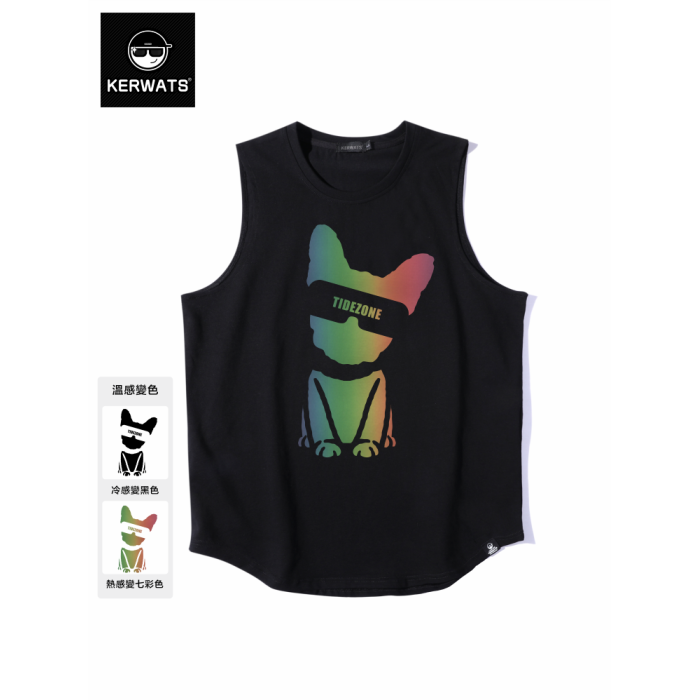 KERWATS夏季溫變七彩小狗印花無袖t恤寬松休閒男女圓領吸汗背心潮