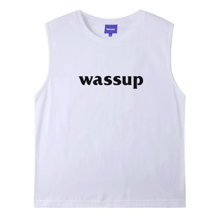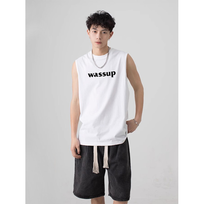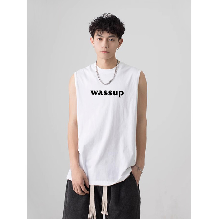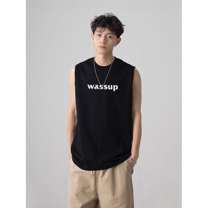 WASSUP無袖t恤男純棉背心夏季坎肩運動健身打底衫寬松大碼汗衫女