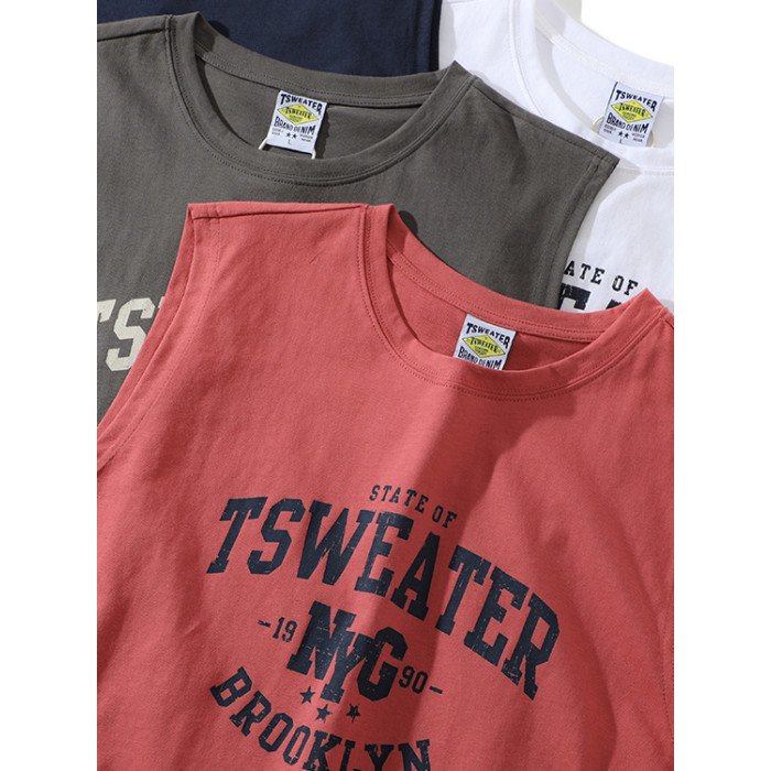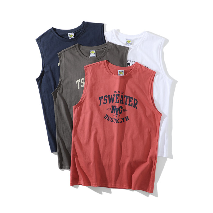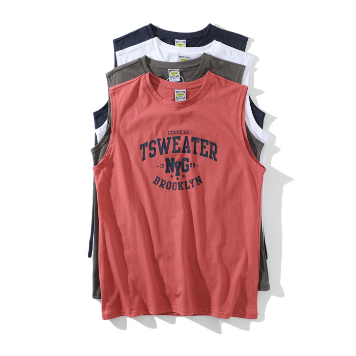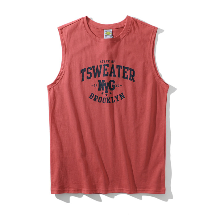 美式純棉背心男夏季薄款外穿休閒寬松印花無袖坎肩運動健身上衣潮