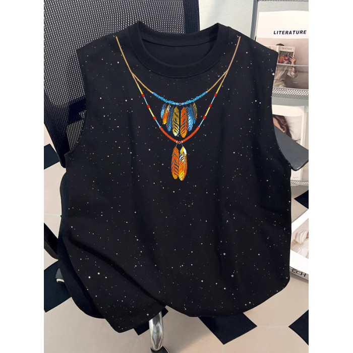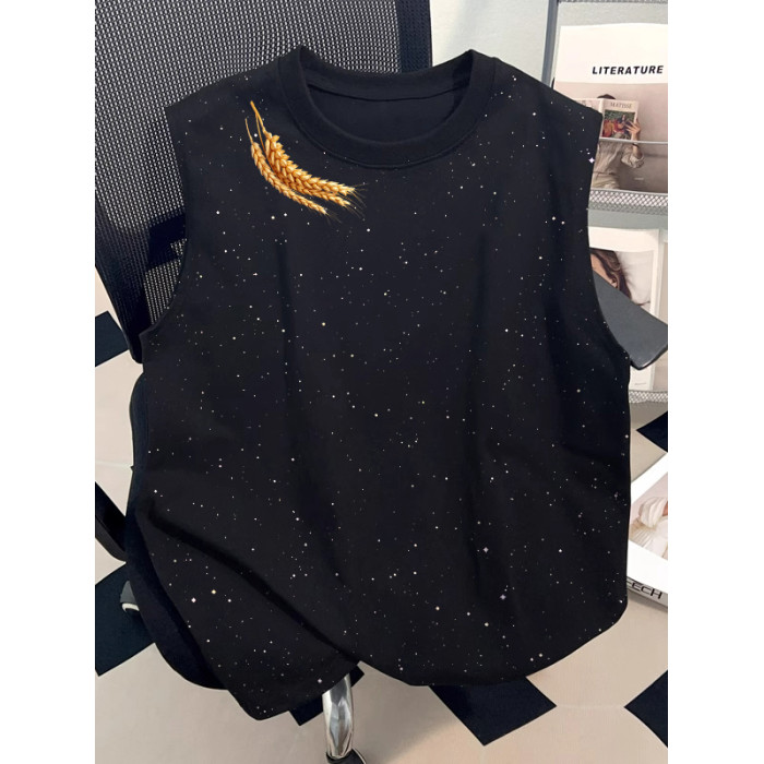 滿天星背心男女同款設計感小衆美式潮牌無袖坎肩夏季純棉圓領寬松