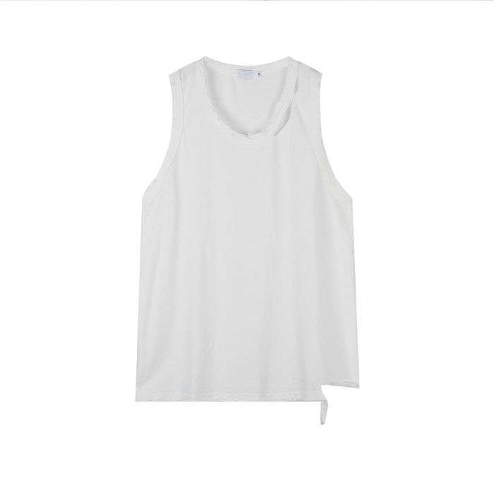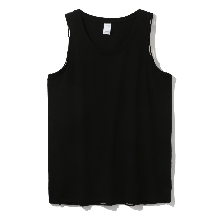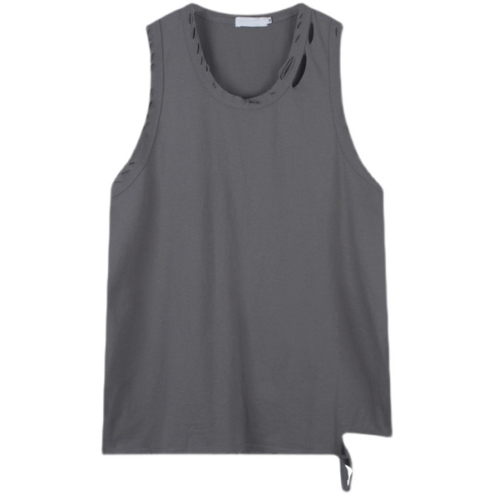 夏做舊破洞無袖背心男潮牌運動健身衣服純棉純色寬松訓練擼鐵坎肩