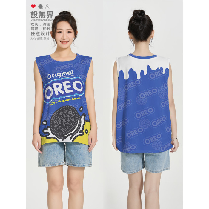 搞怪奧利奧夾心餅乾卡通塗鴉大碼速乾背心男裝女裝夏0017設 無界