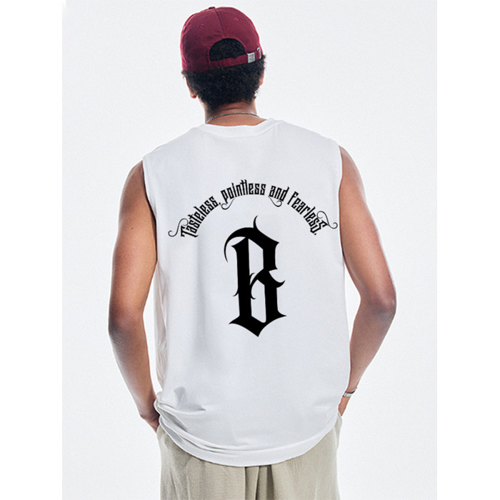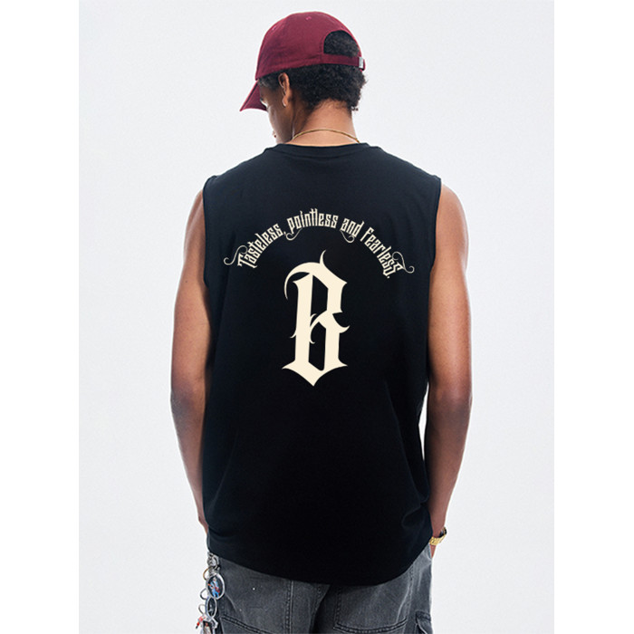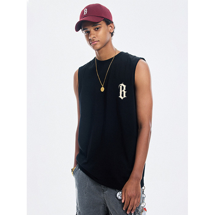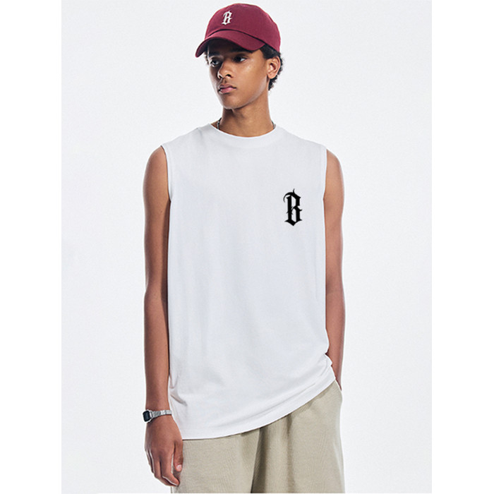 BONELESS BTW潮牌夏季重磅圓領無袖t恤背心男寬松舒適休閒上衣