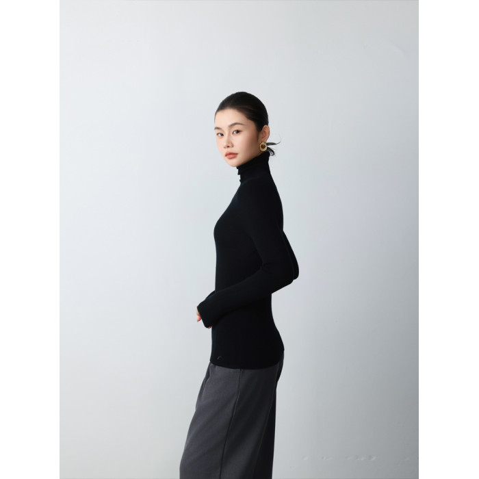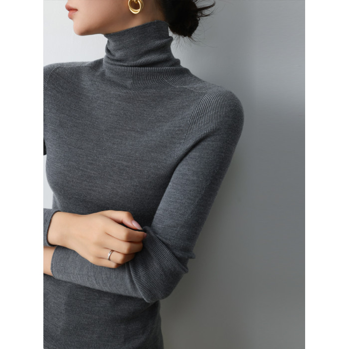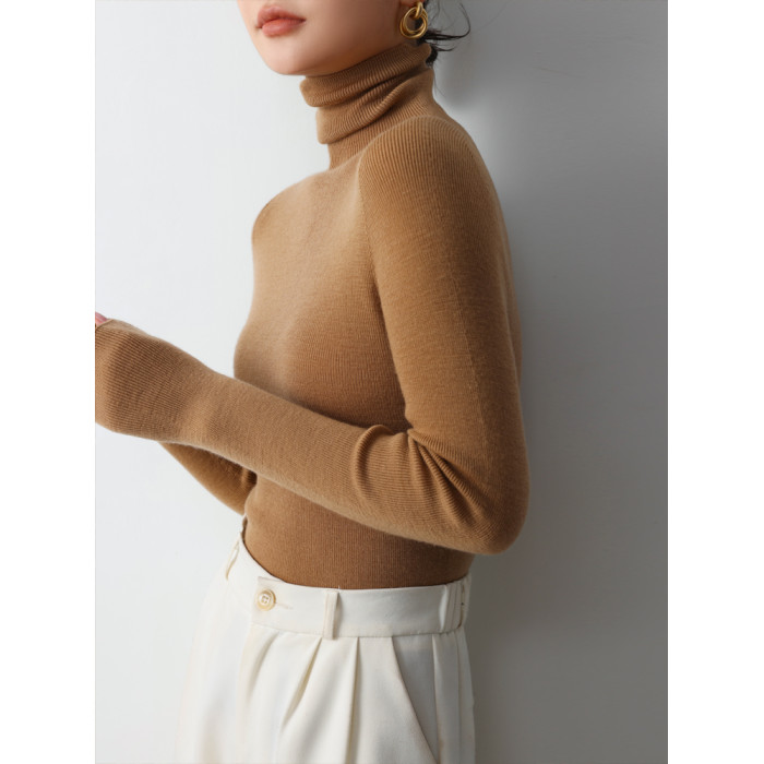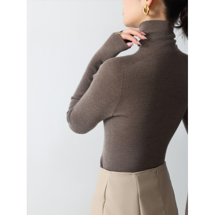 德國敭子紗無縫一體60衹精紡100%純羊毛衫女高領薄款搭軟打底衫