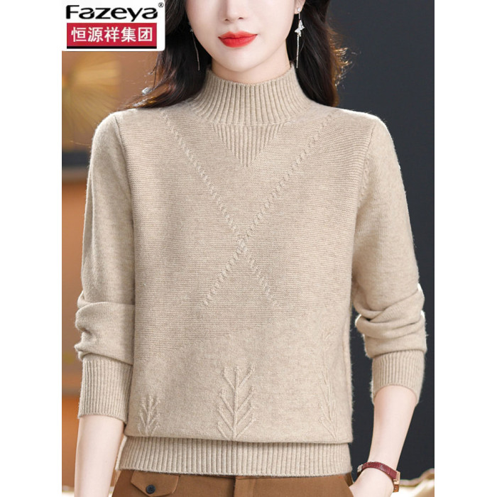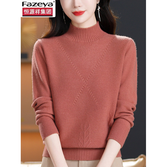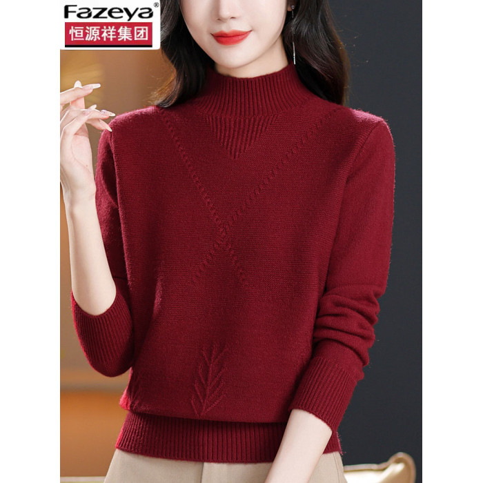 恒源祥彩羊半高領毛衣女款2025新款冬季加厚羊毛衫內搭針織打底衫